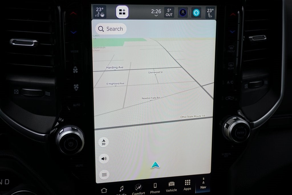 Ask about our 10 year/ 100 thousand mile free powertrain warranty offered on certain vehicles! This vehicle includes the following features : Big Horn Level 2 Equipment Group (115V Auxiliary Power Outlet, 115V Auxiliary Rear Power Outlet, 12 Touchscreen Display, 2nd Row in Floor Storage Bins, 3 Rear Seat Head Restraints, 4 Way Front Headrests, 400W Inverter, 4G LTE Wi-Fi Hot Spot, 9 Amplified Speakers with Subwoofer, Air Conditioning ATC with Dual Zone Control, Apple CarPlay, Auto Power-Folding Mirrors, Auto-Dimming Exterior Driver Mirror, Auto-Dimming Rear-View Mirror, Black Exterior Mirrors, Black Premium Power Mirrors, Body Color Fender Flares, Bucket Seats, Center Console Parts Module, Cluster 7.0 TFT Color Display, Configurable Drive Mode, Connected Travel and Traffic Services, Connectivity - US/Canada, Convex Wide-Angle Exterior Mirror Insert, Deluxe Cloth Bucket Seats, Disassociated Touchscreen Display, Exterior Mirrors Courtesy Lamps, Exterior Mirrors with Heating Element, Exterior Mirrors with Supplemental Signals, Front Seat Back Map Pockets, Full Length Floor Console, Global Telematics Box Module, Glove Box Lamp, Google Android Auto, GPS Antenna Input, GPS Navigation, HD Radio, Heated Front Seats, Heated Steering Wheel, Integrated Center Stack Radio, Integrated Voice Command with Bluetooth®, Leather Wrapped Steering Wheel, LED Dome Lamp with on/Off Switch, LED Footwell Lighting, Manual Adjust 4-Way Front Passenger Seat, Media Hub with 2 Charge Only USBs, Overhead LED Lamps, Power 2-Way Driver Lumbar Adjust, Power Adjust 8-Way Driver Seat, Power Adjustable Pedals, Premium Overhead Console, Radio: Uconnect 5 Navigation with 12.0 Display, Rear 60/40 Folding Seat, Rear Center Armrest, Rear Power Sliding Window, Rear Window Defroster, Remote Tailgate Release, Security Alarm, SiriusXM Radio Service, SiriusXM with 360L, Steering Wheel Mounted Audio Controls, Sun Visors with Illuminated Vanity Mirrors, Universal Garage Door Opener, and USB Host Flip), Night Edition (Accent Color Door Handles, Accent Color Premium Power Mirrors, Accent Color Tailgate Handle, Anti-Spin Differential Rear Axle, Black Exterior Truck Badging, Black Headlamp Bezels, Black Interior Accents, Black Painted Exterior Mirrors Caps, Black Tail Lamp Bezels, Body Color Front Bumper, Body Color Rear Bumper with Step Pads, Dual Exhaust with Black Tips, Grille Black Surround Black Mesh, RAM Grille Badge - Black, and Wheels: 20 x 9.0 Aluminum Painted Clad), Quick Order Package 21Z Big Horn, 4-Wheel Disc Brakes, 48V Belt Starter Generator, 6 Speakers, ABS brakes, Air Conditioning, Alloy wheels, AM/FM radio, Apple CarPlay/Android Auto, Auto High-beam Headlights, Brake assist, Bumpers: chrome, Cloth Bucket Seats, Compass, Delay-off headlights, Driver door bin, Dual front impact airbags, Dual front side impact airbags, Electronic Stability Control, Front anti-roll bar, Front Bucket Seats, Front Center Armrest w/Storage, Front fog lights, Front reading lights, Front wheel independent suspension, Fully automatic headlights, Heated door mirrors, Illuminated entry, Low tire pressure warning, Manual Adjust 4-Way Driver Seat, Manual Folding Exterior Mirrors, Manufacturer's Statement of Origin, MOPAR Front and Rear Rubber Floor Mats, Occupant sensing airbag, Outside temperature display, Overhead airbag, Overhead console, Panic alarm, ParkView Rear Back-Up Camera, Passenger door bin, Passenger vanity mirror, Power door mirrors, Power steering, Power windows, Radio data system, Radio: Uconnect 5 W with 8.4 Display, RAM Grille Badge - Chrome, Rear anti-roll bar, Rear step bumper, Rear Wheelhouse Liners, Remote keyless entry, Speed control, Supplier Part Tracking (J-1), Tachometer, Telescoping steering wheel, Tilt steering wheel, Traction control, Trip computer, Variably intermittent wipers, and Voltmeter. Please verify equipment with dealer.