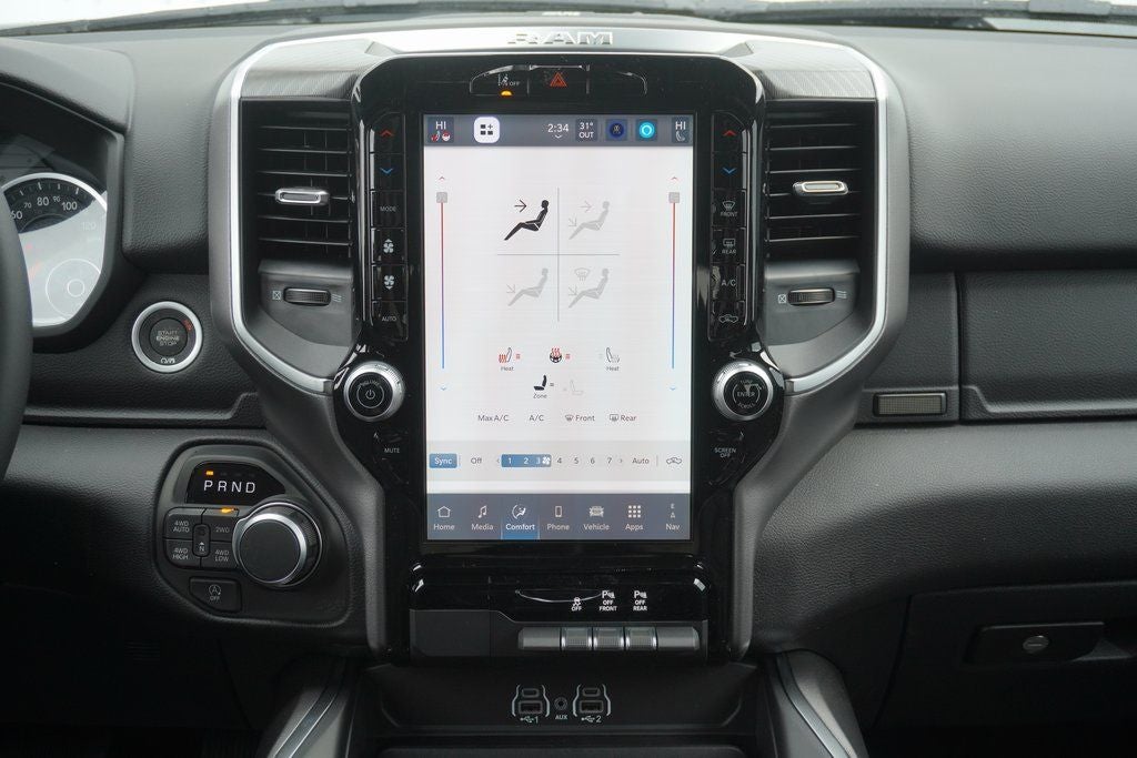 Ask about our 10 year/ 100 thousand mile free powertrain warranty offered on certain vehicles! This vehicle includes the following features : Big Horn Level 2 Equipment Group (115V Auxiliary Power Outlet, 115V Auxiliary Rear Power Outlet, 12 Touchscreen Display, 2nd Row in Floor Storage Bins, 3 Rear Seat Head Restraints, 4 Way Front Headrests, 400W Inverter, 4G LTE Wi-Fi Hot Spot, 9 Amplified Speakers with Subwoofer, Air Conditioning ATC with Dual Zone Control, Apple CarPlay, Auto Power-Folding Mirrors, Auto-Dimming Exterior Driver Mirror, Auto-Dimming Rear-View Mirror, Black Exterior Mirrors, Black Premium Power Mirrors, Body Color Fender Flares, Bucket Seats, Center Console Parts Module, Cluster 7.0 TFT Color Display, Configurable Drive Mode, Connected Travel and Traffic Services, Connectivity - US/Canada, Convex Wide-Angle Exterior Mirror Insert, Deluxe Cloth Bucket Seats, Disassociated Touchscreen Display, Exterior Mirrors Courtesy Lamps, Exterior Mirrors with Heating Element, Exterior Mirrors with Supplemental Signals, Front Seat Back Map Pockets, Full Length Floor Console, Global Telematics Box Module, Glove Box Lamp, Google Android Auto, GPS Antenna Input, GPS Navigation, HD Radio, Heated Front Seats, Heated Steering Wheel, Integrated Center Stack Radio, Integrated Voice Command with Bluetooth®, Leather Wrapped Steering Wheel, LED Dome Lamp with on/Off Switch, LED Footwell Lighting, Manual Adjust 4-Way Front Passenger Seat, Media Hub with 2 Charge Only USBs, Overhead LED Lamps, Power 2-Way Driver Lumbar Adjust, Power Adjust 8-Way Driver Seat, Power Adjustable Pedals, Premium Overhead Console, Radio: Uconnect 5 Navigation with 12.0 Display, Rear 60/40 Folding Seat, Rear Center Armrest, Rear Power Sliding Window, Rear Window Defroster, Remote Tailgate Release, Security Alarm, SiriusXM Radio Service, SiriusXM with 360L, Steering Wheel Mounted Audio Controls, Sun Visors with Illuminated Vanity Mirrors, Universal Garage Door Opener, and USB Host Flip), Night Edition (Accent Color Door Handles, Accent Color Premium Power Mirrors, Accent Color Tailgate Handle, Anti-Spin Differential Rear Axle, Black Exterior Truck Badging, Black Headlamp Bezels, Black Interior Accents, Black Painted Exterior Mirrors Caps, Black Tail Lamp Bezels, Body Color Front Bumper, Body Color Rear Bumper with Step Pads, Dual Exhaust with Black Tips, Grille Black Surround Black Mesh, RAM Grille Badge - Black, and Wheels: 20 x 9.0 Aluminum Painted Clad), Quick Order Package 27Z Big Horn, 33 Gallon Fuel Tank, 4-Wheel Disc Brakes, 48V Belt Starter Generator, 6 Speakers, ABS brakes, Air Conditioning, Alloy wheels, AM/FM radio, Apple CarPlay/Android Auto, Auto High-beam Headlights, Brake assist, Bumpers: chrome, Cloth Bucket Seats, Compass, Delay-off headlights, Driver door bin, Dual front impact airbags, Dual front side impact airbags, Electronic Stability Control, Front anti-roll bar, Front Bucket Seats, Front Center Armrest w/Storage, Front fog lights, Front License Plate Bracket, Front reading lights, Front wheel independent suspension, Fully automatic headlights, Heated door mirrors, Illuminated entry, Low tire pressure warning, Manual Adjust 4-Way Driver Seat, Manual Folding Exterior Mirrors, MOPAR Front and Rear Rubber Floor Mats, Occupant sensing airbag, Outside temperature display, Overhead airbag, Overhead console, Panic alarm, ParkView Rear Back-Up Camera, Passenger door bin, Passenger vanity mirror, Power door mirrors, Power steering, Power windows, Radio data system, Radio: Uconnect 5 W with 8.4 Display, RAM Grille Badge - Chrome, Rear anti-roll bar, Rear step bumper, Rear Wheelhouse Liners, Remote keyless entry, Speed control, Supplier Part Tracking (J-1), Tachometer, Telescoping steering wheel, Tilt steering wheel, Traction control, Trip computer, Variab Price includes: $1500 - 2026 Great Lakes BC Select Inventory Bonus Cash w/ 5PD . Exp. 03/31/2026 $3500 - 2026 National Retail Consumer Cash . Exp. 03/31/2