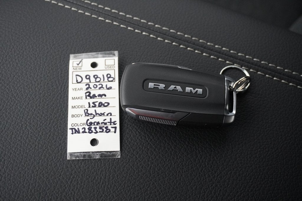 Ask about our 10 year/ 100 thousand mile free powertrain warranty offered on certain vehicles! This vehicle includes the following features : Big Horn Level 2 Equipment Group (115V Auxiliary Power Outlet, 115V Auxiliary Rear Power Outlet, 12 Touchscreen Display, 2nd Row in Floor Storage Bins, 3 Rear Seat Head Restraints, 4 Way Front Headrests, 400W Inverter, 4G LTE Wi-Fi Hot Spot, 9 Amplified Speakers with Subwoofer, Air Conditioning ATC with Dual Zone Control, Apple CarPlay, Auto Power-Folding Mirrors, Auto-Dimming Exterior Driver Mirror, Auto-Dimming Rear-View Mirror, Black Exterior Mirrors, Black Premium Power Mirrors, Body Color Fender Flares, Bucket Seats, Center Console Parts Module, Cluster 7.0 TFT Color Display, Configurable Drive Mode, Connected Travel and Traffic Services, Connectivity - US/Canada, Convex Wide-Angle Exterior Mirror Insert, Deluxe Cloth Bucket Seats, Disassociated Touchscreen Display, Exterior Mirrors Courtesy Lamps, Exterior Mirrors with Heating Element, Exterior Mirrors with Supplemental Signals, Front Seat Back Map Pockets, Full Length Floor Console, Global Telematics Box Module, Glove Box Lamp, Google Android Auto, GPS Antenna Input, GPS Navigation, HD Radio, Heated Front Seats, Heated Steering Wheel, Integrated Center Stack Radio, Integrated Voice Command with Bluetooth®, Leather Wrapped Steering Wheel, LED Dome Lamp with on/Off Switch, LED Footwell Lighting, Manual Adjust 4-Way Front Passenger Seat, Media Hub with 2 Charge Only USBs, Overhead LED Lamps, Power 2-Way Driver Lumbar Adjust, Power Adjust 8-Way Driver Seat, Power Adjustable Pedals, Premium Overhead Console, Radio: Uconnect 5 Navigation with 12.0 Display, Rear 60/40 Folding Seat, Rear Center Armrest, Rear Power Sliding Window, Rear Window Defroster, Remote Tailgate Release, Security Alarm, SiriusXM Radio Service, SiriusXM with 360L, Steering Wheel Mounted Audio Controls, Sun Visors with Illuminated Vanity Mirrors, Universal Garage Door Opener, and USB Host Flip), Night Edition (Accent Color Door Handles, Accent Color Premium Power Mirrors, Accent Color Tailgate Handle, Anti-Spin Differential Rear Axle, Black Exterior Truck Badging, Black Headlamp Bezels, Black Interior Accents, Black Painted Exterior Mirrors Caps, Black Tail Lamp Bezels, Body Color Front Bumper, Body Color Rear Bumper with Step Pads, Dual Exhaust with Black Tips, Grille Black Surround Black Mesh, RAM Grille Badge - Black, and Wheels: 20 x 9.0 Aluminum Painted Clad), Quick Order Package 27Z Big Horn, 4-Wheel Disc Brakes, 48V Belt Starter Generator, 6 Speakers, ABS brakes, Air Conditioning, Alloy wheels, AM/FM radio, Apple CarPlay/Android Auto, Auto High-beam Headlights, Brake assist, Bumpers: chrome, Cloth Bucket Seats, Compass, Delay-off headlights, Driver door bin, Dual front impact airbags, Dual front side impact airbags, Electronic Stability Control, Front anti-roll bar, Front Bucket Seats, Front Center Armrest w/Storage, Front fog lights, Front License Plate Bracket, Front reading lights, Front wheel independent suspension, Fully automatic headlights, Heated door mirrors, Illuminated entry, Low tire pressure warning, Manual Adjust 4-Way Driver Seat, Manual Folding Exterior Mirrors, Manufacturer's Statement of Origin, MOPAR Front and Rear Rubber Floor Mats, MyFlexCare Service Plan, Occupant sensing airbag, Outside temperature display, Overhead airbag, Overhead console, Panic alarm, ParkView Rear Back-Up Camera, Passenger door bin, Passenger vanity mirror, Power door mirrors, Power steering, Power windows, Radio data system, Radio: Uconnect 5 W with 8.4 Display, RAM Grille Badge - Chrome, Rear anti-roll bar, Rear step bumper, Remote keyless entry, Speed control, Supplier Part Tracking (J-1), Tachometer, Telescoping steering wheel, Tilt steering wheel, Traction control, Trailer Brake Control, Trip computer, Variably intermittent wipers, and Voltmeter. Ple Price includes: $3500 - 2026 National Retail Consumer Cash . Exp. 02/02/2