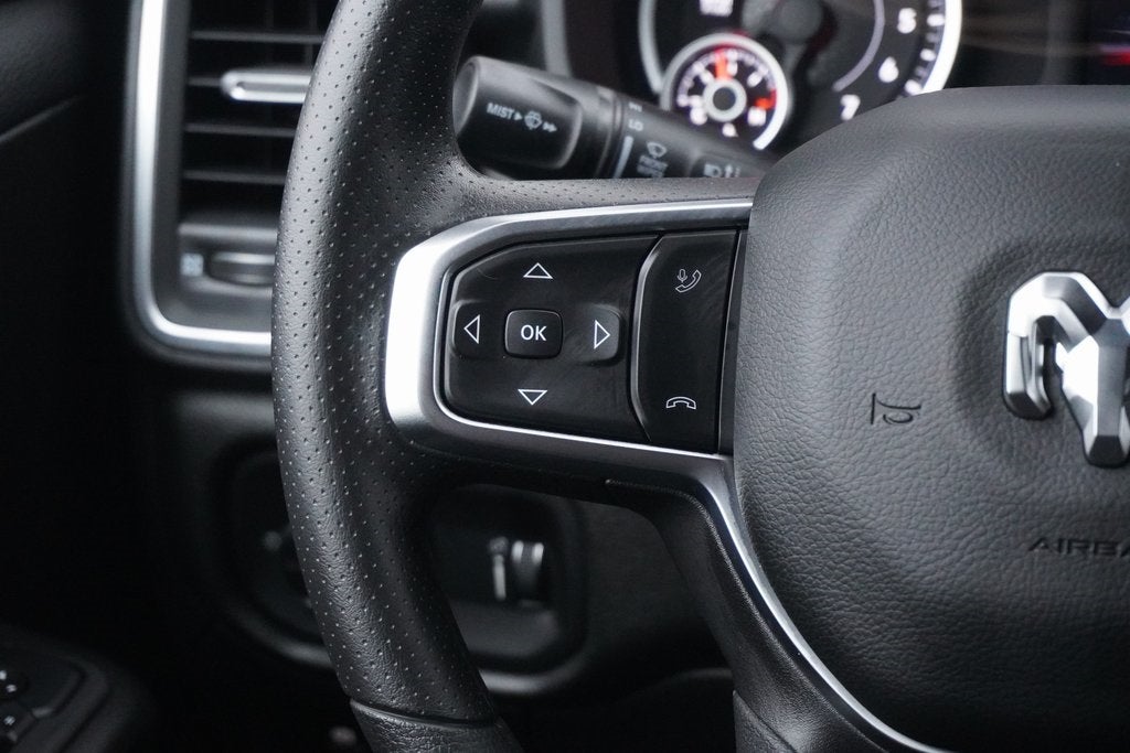 Ask about our 10 year/ 100 thousand mile free powertrain warranty offered on certain vehicles! This vehicle includes the following features : Quick Order Package 21Z Big Horn, 3 Rear Seat Head Restraints, 4 Way Front Headrests, 4-Wheel Disc Brakes, 48V Belt Starter Generator, 4G LTE Wi-Fi Hot Spot, 6 Speakers, ABS brakes, Air Conditioning, Alloy wheels, AM/FM radio, Apple CarPlay, Apple CarPlay/Android Auto, Auto High-beam Headlights, Black Exterior Mirrors, Brake assist, Bucket Seats, Bumpers: chrome, Center Console Parts Module, Cloth Bucket Seats, Compass, Connectivity - US/Canada, Convex Wide-Angle Exterior Mirror Insert, Delay-off headlights, Driver door bin, Dual front impact airbags, Dual front side impact airbags, Electronic Stability Control, Exterior Mirrors with Heating Element, Front anti-roll bar, Front Bucket Seats, Front Center Armrest w/Storage, Front fog lights, Front License Plate Bracket, Front reading lights, Front wheel independent suspension, Full Length Floor Console, Fully automatic headlights, Global Telematics Box Module, Google Android Auto, GPS Antenna Input, Heated door mirrors, Illuminated entry, Integrated Center Stack Radio, Integrated Voice Command with Bluetooth®, Low tire pressure warning, Manual Adjust 4-Way Driver Seat, Manual Adjust 4-Way Front Passenger Seat, Manual Folding Exterior Mirrors, Manufacturer's Statement of Origin, MOPAR Front and Rear Rubber Floor Mats, Occupant sensing airbag, Outside temperature display, Overhead airbag, Overhead console, Panic alarm, ParkView Rear Back-Up Camera, Passenger door bin, Passenger vanity mirror, Power door mirrors, Power steering, Power windows, Radio data system, Radio: Uconnect 5 W with 8.4 Display, RAM Grille Badge - Chrome, Rear anti-roll bar, Rear step bumper, Rear Wheelhouse Liners, Remote keyless entry, Speed control, Supplier Part Tracking (J-1), Tachometer, Telescoping steering wheel, Tilt steering wheel, Traction control, Trip computer, USB Host Flip, Variably intermittent wipers, Voltmeter, and Wheels: 18 x 8 Cast-Aluminum Painted. Please verify equipment with dealer.