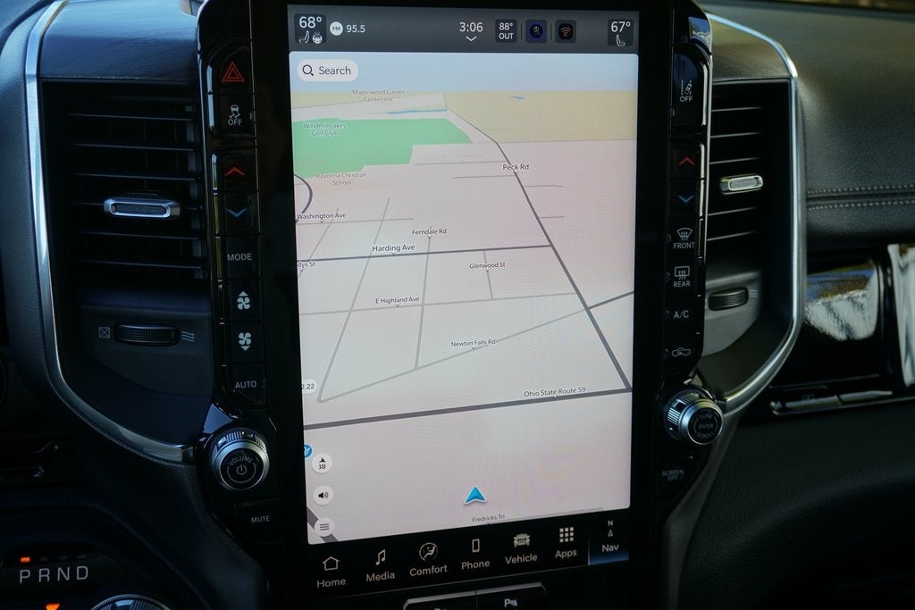 Ask about our 10 year/ 100 thousand mile free powertrain warranty offered on certain vehicles! This vehicle includes the following features : Bed Utility Group (Exterior 115V AC Outlet, MOPAR 4 Adjustable Cargo Tie-Down Hooks, and MOPAR Spray in Bedliner), Laramie Level 2 Equipment Group (14.4 Touchscreen Display, 4G LTE Wi-Fi Hot Spot, Cluster 12 TFT Color Display, Connected Travel and Traffic Services, Connectivity - US/Canada, Front Passenger Interactive Display, GPS Navigation, Harman/Kardon 19 Speaker Premium Sound, Integrated Center Stack Radio, Integrated Voice Command with Bluetooth®, Power Tailgate, Radio: Uconnect 5 Nav with 14.4 Display, Rain Sensitive Windshield Wipers, SiriusXM Radio Service, SiriusXM with 360L, and USB Host Flip), Night Edition (Accent Color Door Handles, Accent Color Premium Power Mirrors, Accent Color Tailgate Handle, Anti-Spin Differential Rear Axle, Auto Power-Folding Mirrors, Auto-Dimming Exterior Driver Mirror, Black Exterior Truck Badging, Black Headlamp Bezels, Black Interior Accents, Black Painted Exterior Mirrors Caps, Black Tail Lamp Bezels, Body Color Front Bumper, Body Color Rear Bumper with Step Pads, Convex Wide-Angle Exterior Mirror Insert, Dual Exhaust with Black Tips, Exterior Mirrors Approach Lamps, Exterior Mirrors Courtesy Lamps, Exterior Mirrors with Heating Element, Exterior Mirrors with Memory, Exterior Mirrors with Supplemental Signals, Grille Surround 3 Black Texture 2 Black, Pirelli Brand Tires, Proximity Approach/Departure Lamps, RAM Grille Badge - Black, Sport Performance Hood, and Wheels: 22 x 9 Forged Aluminum), Quick Order Package 27H Laramie, 10 Speakers, 33 Gallon Fuel Tank, 4-Wheel Disc Brakes, ABS brakes, Active Noise Control System, Air Conditioning, Alloy wheels, AM/FM radio: SiriusXM with 360L, Apple CarPlay/Android Auto, Audio memory, Auto High-beam Headlights, Auto-dimming door mirrors, Auto-dimming Rear-View mirror, Automatic temperature control, Brake assist, Bumpers: chrome, Chrome Exterior Mirrors, Compass, Delay-off headlights, Driver door bin, Driver vanity mirror, Dual front impact airbags, Dual front side impact airbags, Electronic Stability Control, Front anti-roll bar, Front Bucket Seats, Front Center Armrest w/Storage, Front dual zone A/C, Front fog lights, Front License Plate Bracket, Front reading lights, Front wheel independent suspension, Fully automatic headlights, Garage door transmitter, Heated door mirrors, Heated front seats, Heated rear seats, Heated steering wheel, Illuminated entry, Leather steering wheel, Leather Trimmed Bucket Seats, Low tire pressure warning, Manufacturer's Statement of Origin, Memory seat, MOPAR Front and Rear Rubber Floor Mats, MyFlexCare Service Plan, Navigation System, Occupant sensing airbag, Off-Road Information Pages, Outside temperature display, Overhead airbag, Overhead console, Panic alarm, ParkView Rear Back-Up Camera, Passenger door bin, Passenger vanity mirror, Power door mirrors, Power driver seat, Power passenger seat, Power steering, Power windows, Radio data system, Radio: Uconnect 5 Navigation with 12.0 Display, RAM Grille Badge - Chrome, Rear anti-roll bar, Rear reading lights, Rear seat center armrest, Rear step bumper, Remote keyless entry, Security system, Speed control, Split folding rear seat, Steering wheel mounted audio controls, Tachometer, Telescoping steering wheel, Tilt steering wheel, Traction control, Trip computer, Turn signal indicator mirrors, Variably intermittent wipers, Ventilated front seats, Voltmeter, and Wheels: 20 x 9 Premium Paint/Polish. Please verify equipment with dealer.