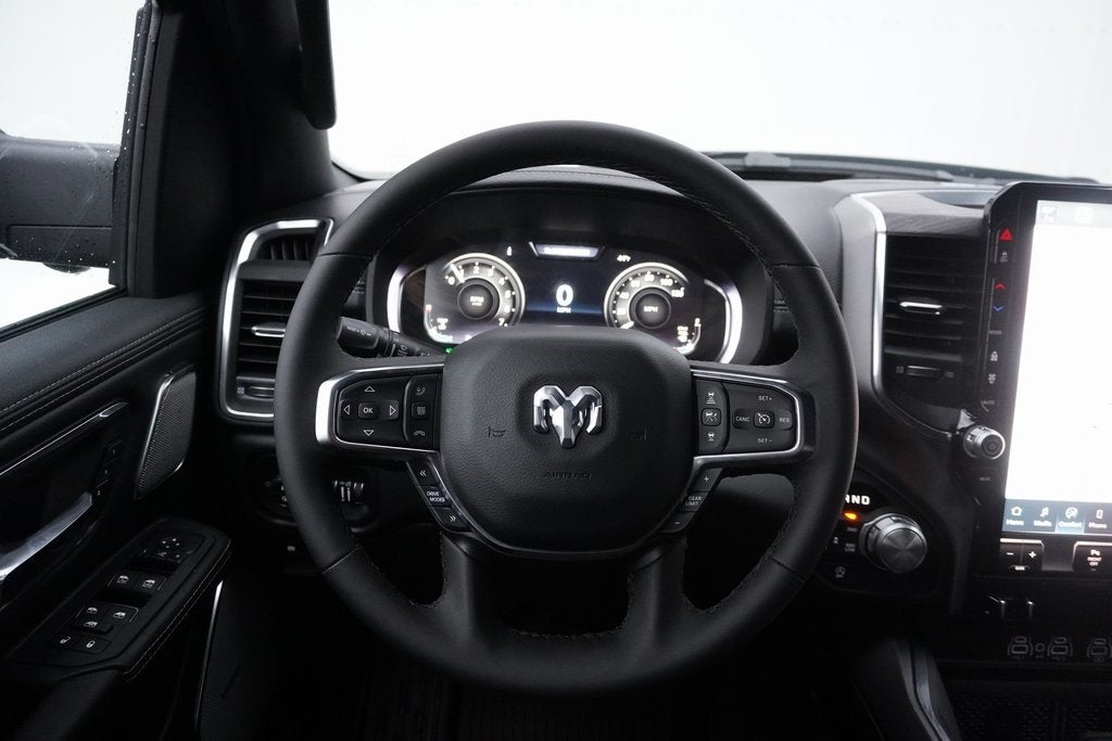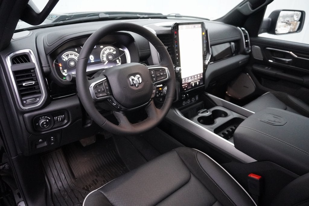 Ask about our 10 year/ 100 thousand mile free powertrain warranty offered on certain vehicles! This vehicle includes the following features : Bed Utility Group (Exterior 115V AC Outlet, MOPAR 4 Adjustable Cargo Tie-Down Hooks, and MOPAR Spray in Bedliner), Laramie Level 2 Equipment Group (14.4 Touchscreen Display, 4G LTE Wi-Fi Hot Spot, Cluster 12 TFT Color Display, Connected Travel and Traffic Services, Connectivity - US/Canada, Front Passenger Interactive Display, GPS Navigation, Harman/Kardon 19 Speaker Premium Sound, Integrated Center Stack Radio, Integrated Voice Command with Bluetooth®, Power Tailgate, Radio: Uconnect 5 Nav with 14.4 Display, Rain Sensitive Windshield Wipers, SiriusXM Radio Service, SiriusXM with 360L, and USB Host Flip), Night Edition (Accent Color Door Handles, Accent Color Premium Power Mirrors, Accent Color Tailgate Handle, Anti-Spin Differential Rear Axle, Auto Power-Folding Mirrors, Auto-Dimming Exterior Driver Mirror, Black Exterior Truck Badging, Black Headlamp Bezels, Black Interior Accents, Black Painted Exterior Mirrors Caps, Black Tail Lamp Bezels, Body Color Front Bumper, Body Color Rear Bumper with Step Pads, Convex Wide-Angle Exterior Mirror Insert, Dual Exhaust with Black Tips, Exterior Mirrors Approach Lamps, Exterior Mirrors Courtesy Lamps, Exterior Mirrors with Heating Element, Exterior Mirrors with Memory, Exterior Mirrors with Supplemental Signals, Grille Surround 3 Black Texture 2 Black, Pirelli Brand Tires, Proximity Approach/Departure Lamps, RAM Grille Badge - Black, Sport Performance Hood, and Wheels: 22 x 9 Forged Aluminum), Quick Order Package 27H Laramie, 10 Speakers, 4-Wheel Disc Brakes, ABS brakes, Active Noise Control System, Air Conditioning, Alloy wheels, AM/FM radio: SiriusXM with 360L, Apple CarPlay/Android Auto, Audio memory, Auto High-beam Headlights, Auto-dimming door mirrors, Auto-dimming Rear-View mirror, Automatic temperature control, Brake assist, Bumpers: chrome, Chrome Exterior Mirrors, Compass, Delay-off headlights, Dome Dual LED Reading Lamp, Driver door bin, Driver vanity mirror, Dual front impact airbags, Dual front side impact airbags, Dual-Pane Panoramic Sunroof, Electronic Stability Control, Front anti-roll bar, Front Bucket Seats, Front Center Armrest w/Storage, Front dual zone A/C, Front fog lights, Front License Plate Bracket, Front reading lights, Front wheel independent suspension, Fully automatic headlights, Garage door transmitter, Heated door mirrors, Heated front seats, Heated rear seats, Heated steering wheel, Illuminated entry, Leather steering wheel, Leather Trimmed Bucket Seats, LED Dome/Reading Lamp, Low tire pressure warning, Manufacturer's Statement of Origin, Memory seat, MOPAR Front and Rear Rubber Floor Mats, MyFlexCare Service Plan, Navigation System, Occupant sensing airbag, Off-Road Information Pages, Outside temperature display, Overhead airbag, Overhead console, Panic alarm, ParkView Rear Back-Up Camera, Passenger door bin, Passenger vanity mirror, Power door mirrors, Power driver seat, Power passenger seat, Power steering, Power windows, Radio data system, Radio: Uconnect 5 Navigation with 12.0 Display, RAM Grille Badge - Chrome, RamBox Cargo Management System, Rear anti-roll bar, Rear reading lights, Rear seat center armrest, Rear step bumper, Remote keyless entry, Security system, Speed control, Split folding rear seat, Steering wheel mounted audio controls, Tachometer, Telescoping steering wheel, Tilt steering wheel, Traction control, Trailer Brake Control, Trip computer, Turn signal indicator mirrors, Variably intermittent wipers, Ventilated front seats, Voltmeter, and Wheels: 20 x 9 Premium Paint/Polish. Please verify equipment with dealer.