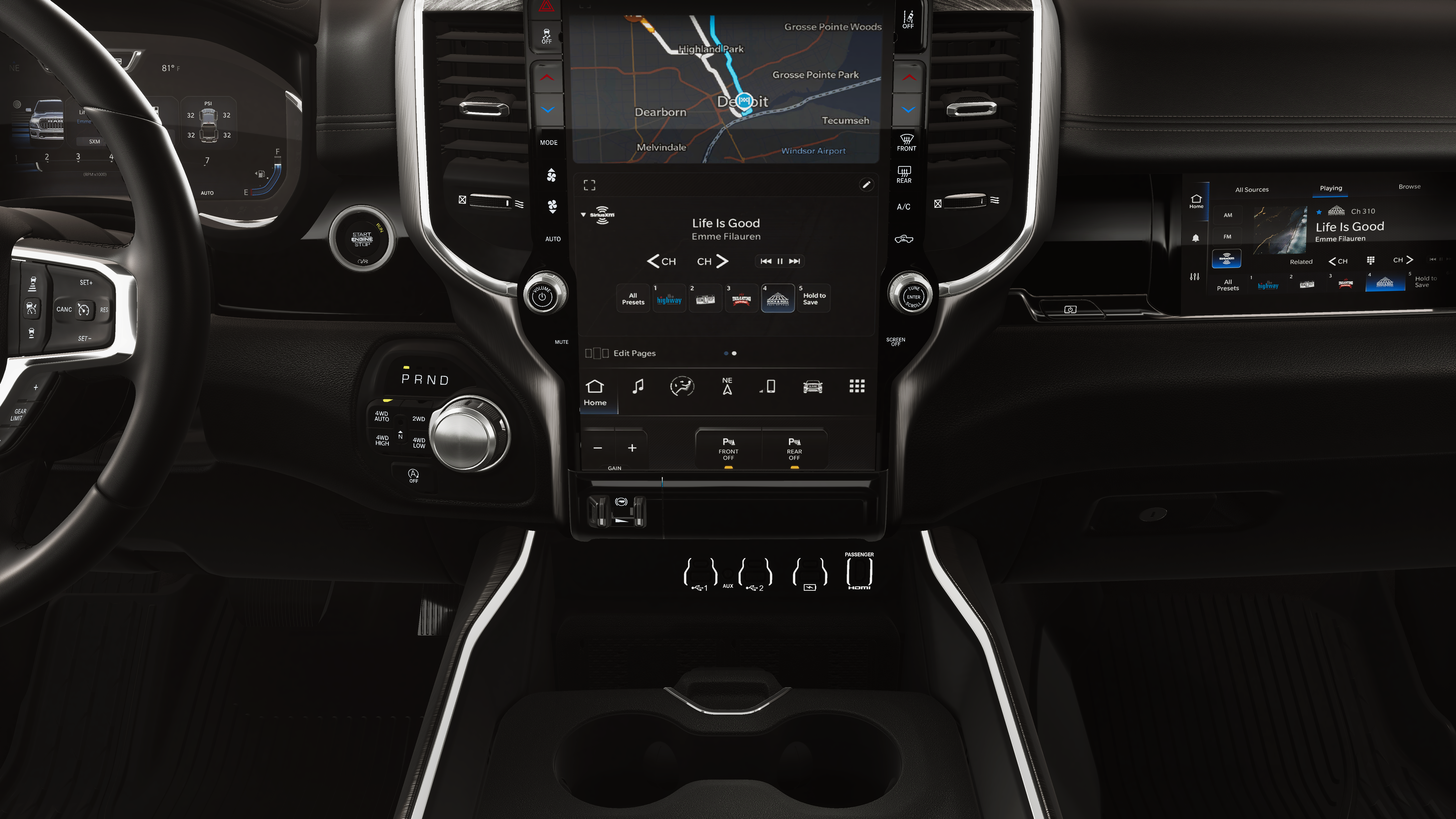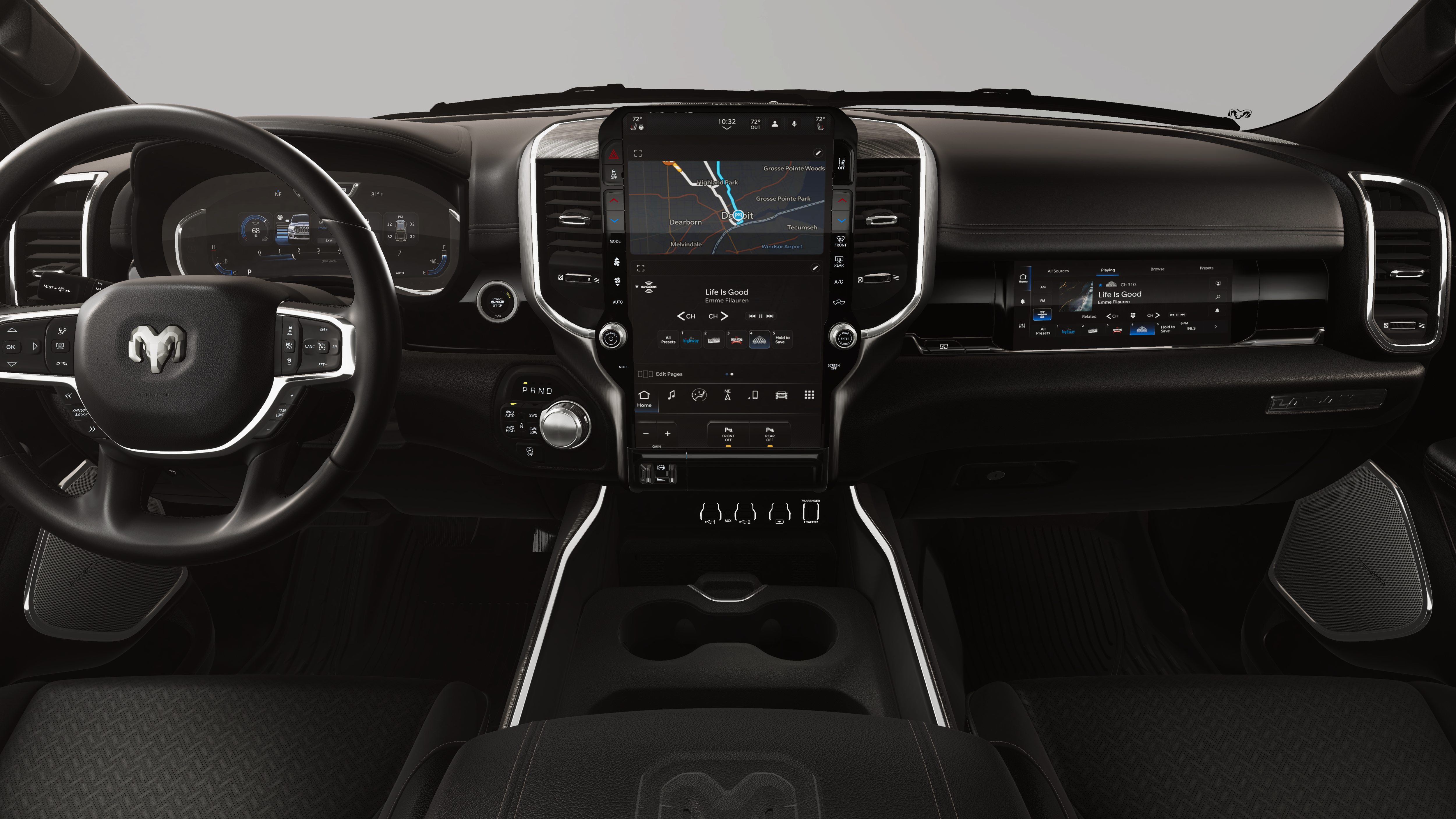Ask about our 10 year/ 100 thousand mile free powertrain warranty offered on certain vehicles! This vehicle includes the following features : Laramie Level 2 Equipment Group (14.4 Touchscreen Display, 4G LTE Wi-Fi Hot Spot, Cluster 12 TFT Color Display, Connected Travel and Traffic Services, Connectivity - US/Canada, Front Passenger Interactive Display, GPS Navigation, Harman/Kardon 19 Speaker Premium Sound, Integrated Center Stack Radio, Integrated Voice Command with Bluetooth®, Power Tailgate, Radio: Uconnect 5 Nav with 14.4 Display, Rain Sensitive Windshield Wipers, SiriusXM Radio Service, SiriusXM with 360L, and USB Host Flip), Night Edition (Accent Color Door Handles, Accent Color Premium Power Mirrors, Accent Color Tailgate Handle, Anti-Spin Differential Rear Axle, Auto Power-Folding Mirrors, Auto-Dimming Exterior Driver Mirror, Black Exterior Truck Badging, Black Headlamp Bezels, Black Interior Accents, Black Painted Exterior Mirrors Caps, Black Tail Lamp Bezels, Body Color Front Bumper, Body Color Rear Bumper with Step Pads, Convex Wide-Angle Exterior Mirror Insert, Dual Exhaust with Black Tips, Exterior Mirrors Approach Lamps, Exterior Mirrors Courtesy Lamps, Exterior Mirrors with Heating Element, Exterior Mirrors with Memory, Exterior Mirrors with Supplemental Signals, Grille Surround 3 Black Texture 2 Black, Pirelli Brand Tires, Proximity Approach/Departure Lamps, RAM Grille Badge - Black, Sport Performance Hood, and Wheels: 22 x 9 Forged Aluminum), Quick Order Package 27H Laramie, 10 Speakers, 33 Gallon Fuel Tank, 4-Wheel Disc Brakes, ABS brakes, Active Noise Control System, Air Conditioning, Alloy wheels, AM/FM radio: SiriusXM with 360L, Apple CarPlay/Android Auto, Audio memory, Auto High-beam Headlights, Auto-dimming door mirrors, Auto-dimming Rear-View mirror, Automatic temperature control, Brake assist, Bumpers: chrome, Chrome Exterior Mirrors, Compass, Delay-off headlights, Driver door bin, Driver vanity mirror, Dual front impact airbags, Dual front side impact airbags, Electronic Stability Control, Front anti-roll bar, Front Bucket Seats, Front Center Armrest w/Storage, Front dual zone A/C, Front fog lights, Front License Plate Bracket, Front reading lights, Front wheel independent suspension, Fully automatic headlights, Garage door transmitter, Heated door mirrors, Heated front seats, Heated rear seats, Heated steering wheel, Illuminated entry, Leather steering wheel, Leather Trimmed Bucket Seats, Low tire pressure warning, Manufacturer's Statement of Origin, Memory seat, MOPAR Front and Rear Rubber Floor Mats, MyFlexCare Service Plan, Navigation System, Occupant sensing airbag, Off-Road Information Pages, Outside temperature display, Overhead airbag, Overhead console, Panic alarm, ParkView Rear Back-Up Camera, Passenger door bin, Passenger vanity mirror, Power door mirrors, Power driver seat, Power passenger seat, Power steering, Power windows, Radio data system, Radio: Uconnect 5 Navigation with 12.0 Display, RAM Grille Badge - Chrome, Rear anti-roll bar, Rear reading lights, Rear seat center armrest, Rear step bumper, Remote keyless entry, Security system, Speed control, Split folding rear seat, Steering wheel mounted audio controls, Tachometer, Telescoping steering wheel, Tilt steering wheel, Traction control, Trailer Brake Control, Trip computer, Turn signal indicator mirrors, Variably intermittent wipers, Ventilated front seats, Voltmeter, and Wheels: 20 x 9 Premium Paint/Polish. Please verify equipment with dealer.