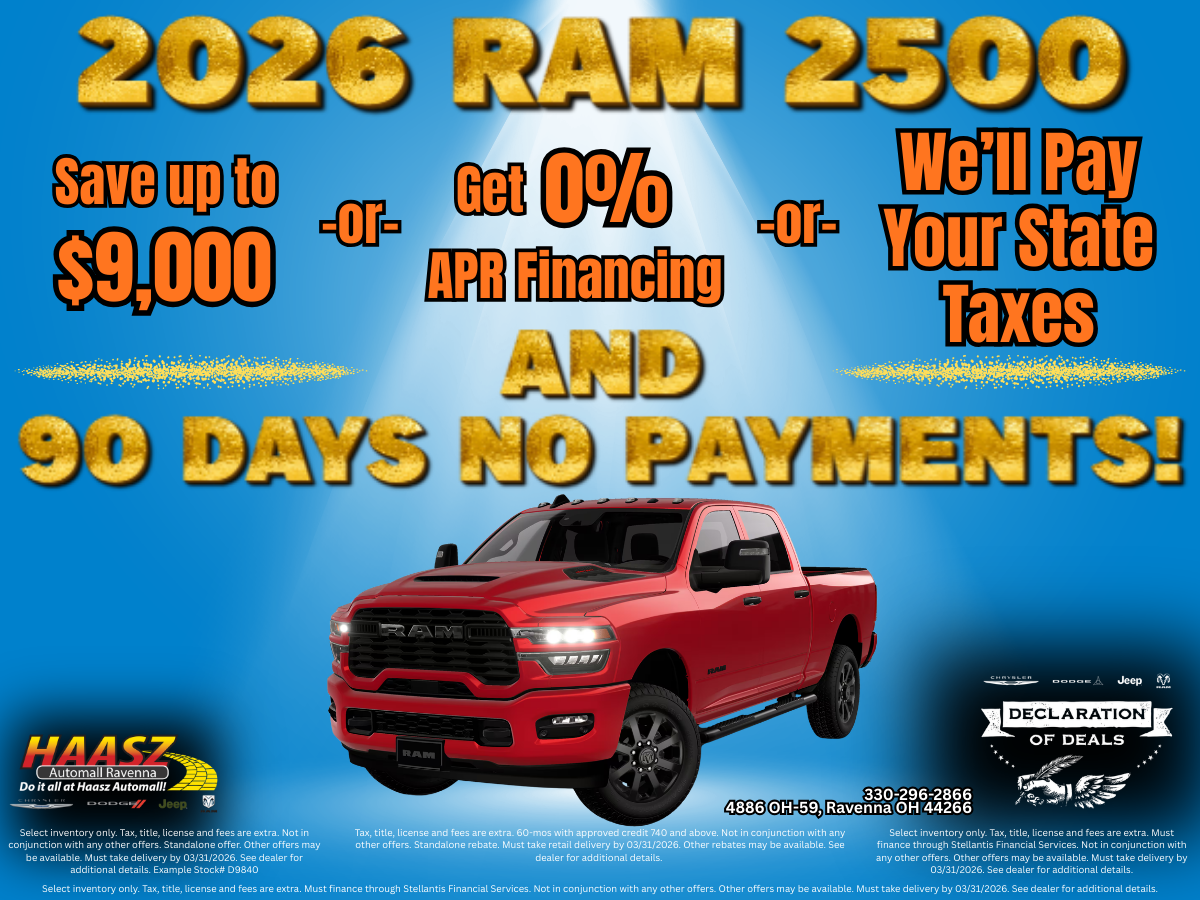 Buy a 2026 Ram 2500 with 0% APR - or - Save up to $9,000 - or - We'll pay your state tax!