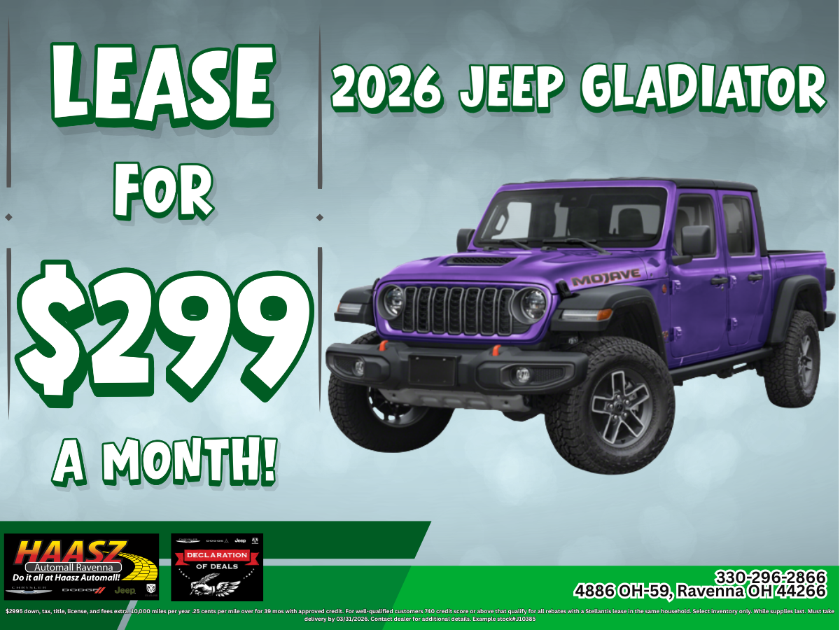 Lease a 2026 Jeep Gladiator for $299 a month!