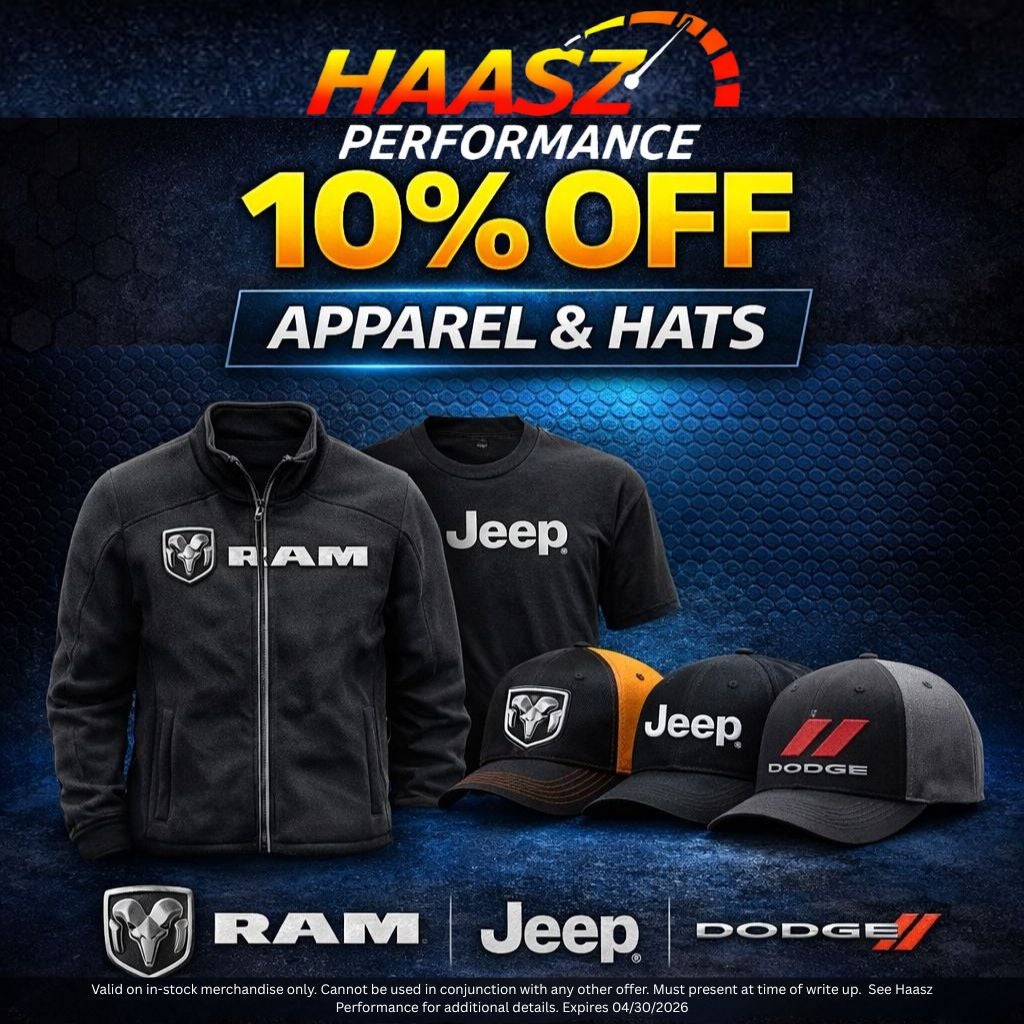Disclaimer: Valid on in-stock merchandise only. Cannot be used in conjunction with any other offer. Must present at time of write up. See Haasz Performance for additional details. Expires 04/30/2026