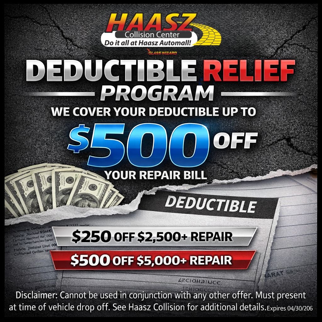 Disclaimer: Cannot be used in conjunction with any other offer. Must present at time of vehicle drop off. See Haasz Collision for additional details Expires 06/30/2026